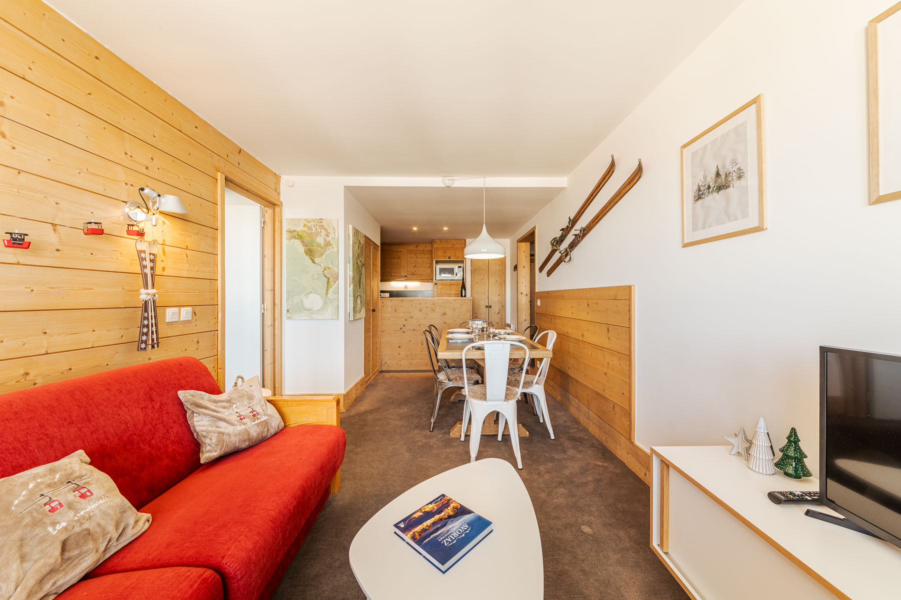 Optimisé pour une famille, cet appartement est très fonctionnel avec son espace rangement pour les vêtements de ski à l'entrée et son sèche chaussure. Après une rénovation du salon et chambre, la SDB et la petite chambre ont été rénovés cet été afin d'augmenter le confort pour nos convives.