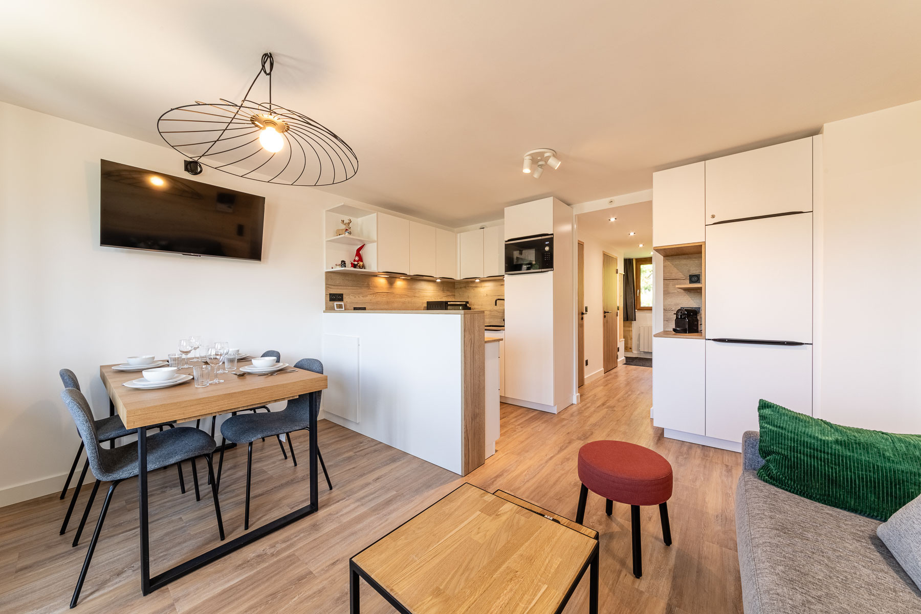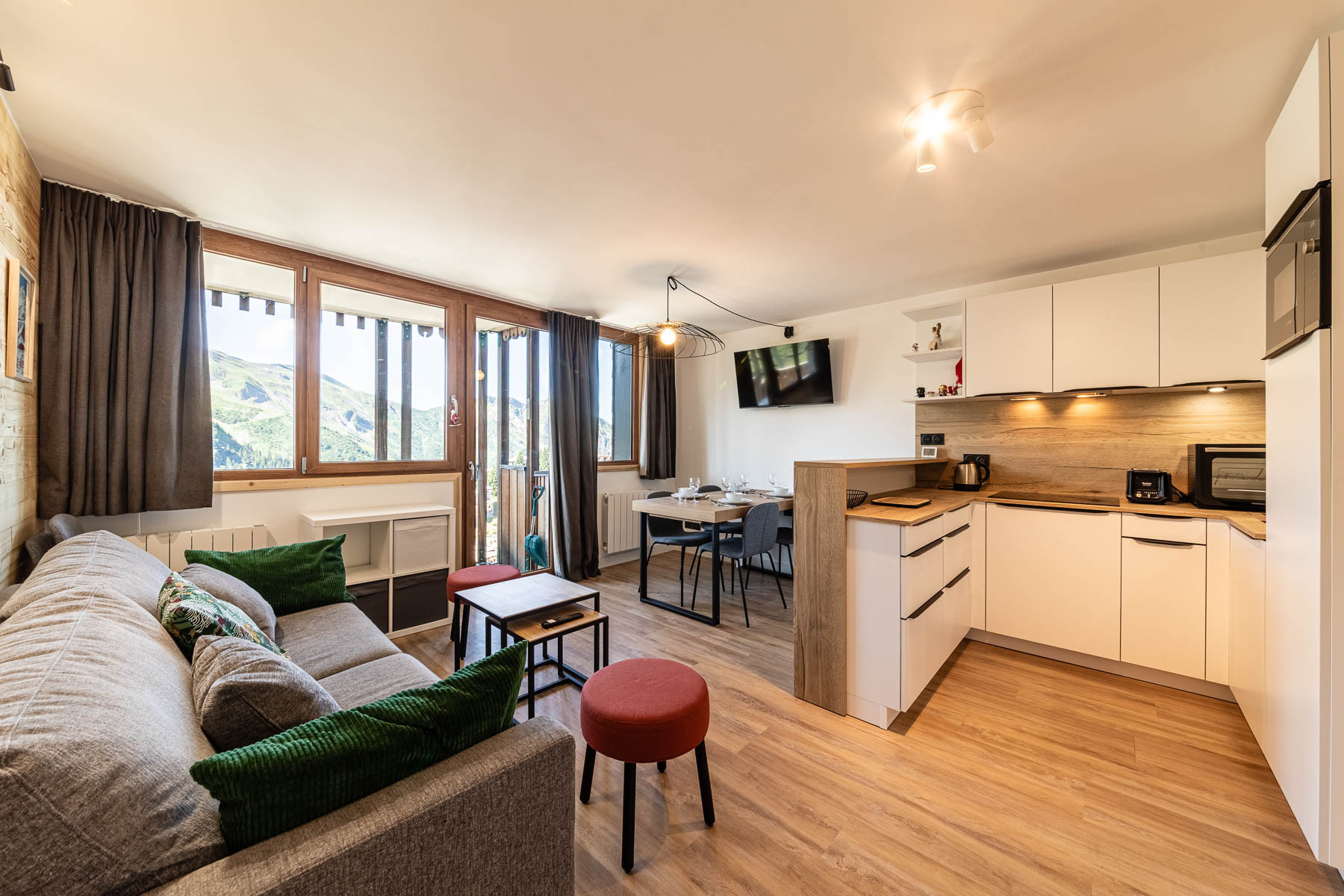 - A living room - TV / dining area with access to a south-facing balcony from where you can enjoy an unobstructed view of the mountains and the village of Avoriaz.