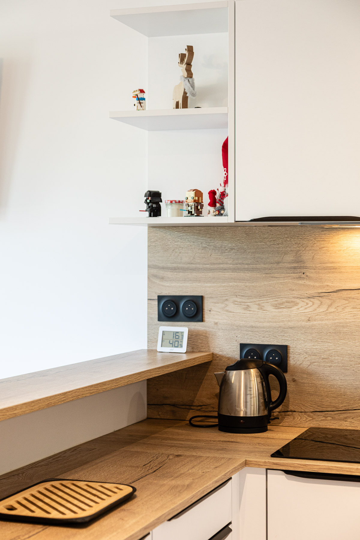 - An open-plan kitchen fully equipped with an oven, microwave, dishwasher, 4-burner hob, extractor hood and Nespresso coffee machine.