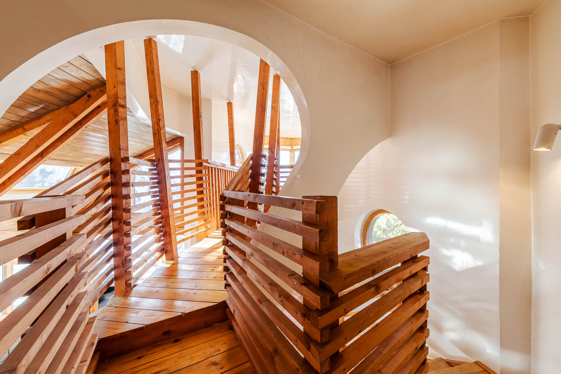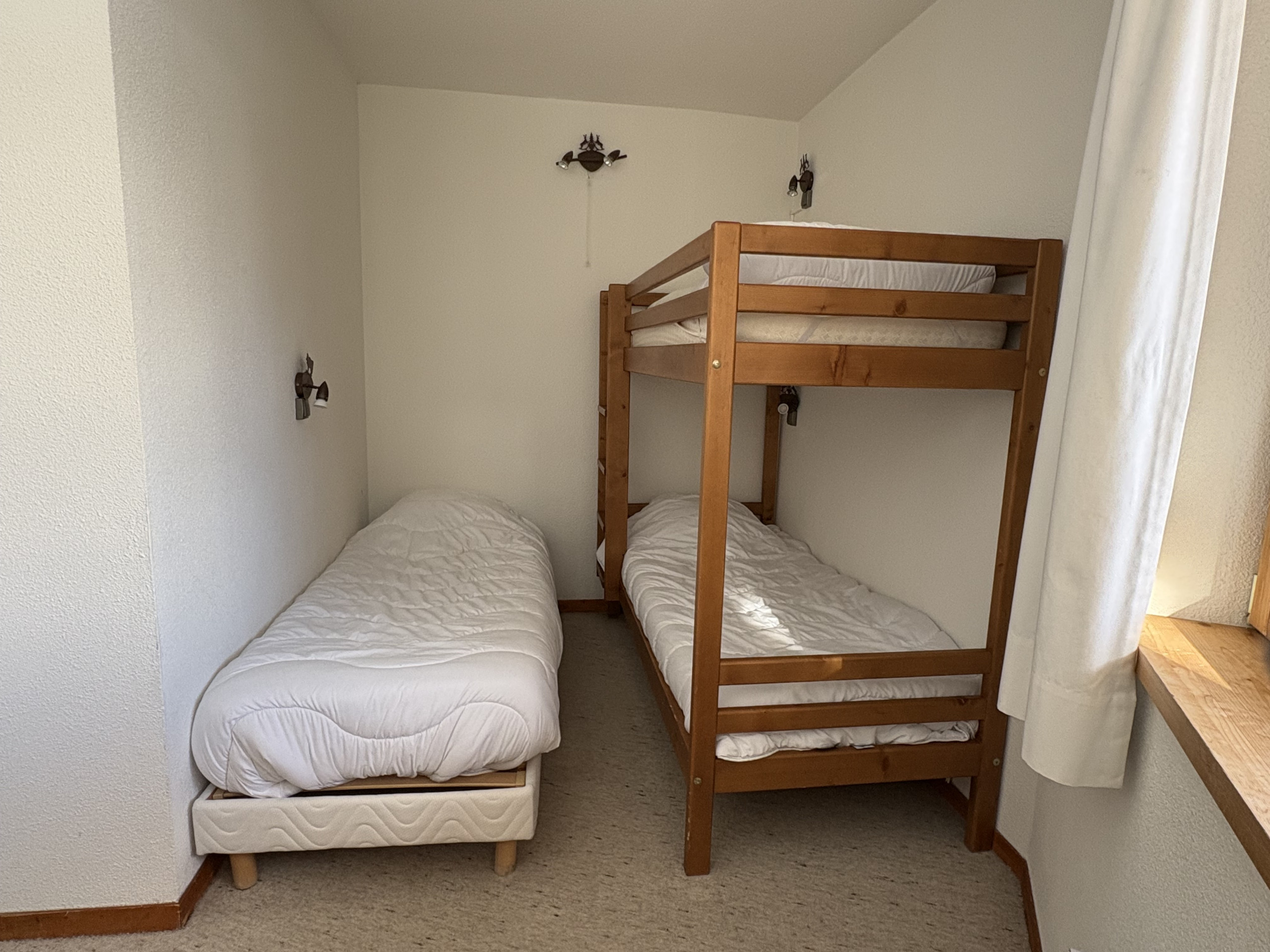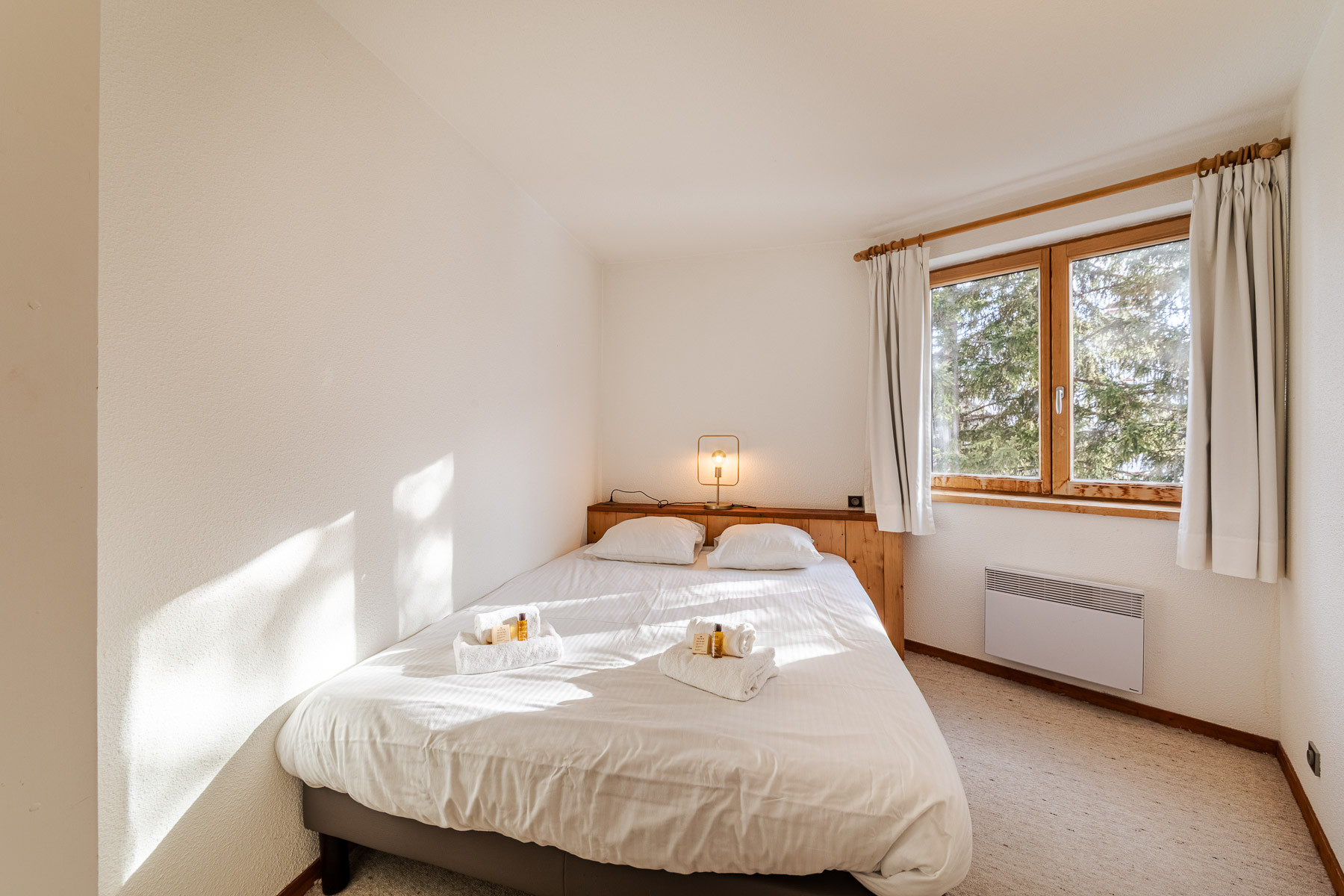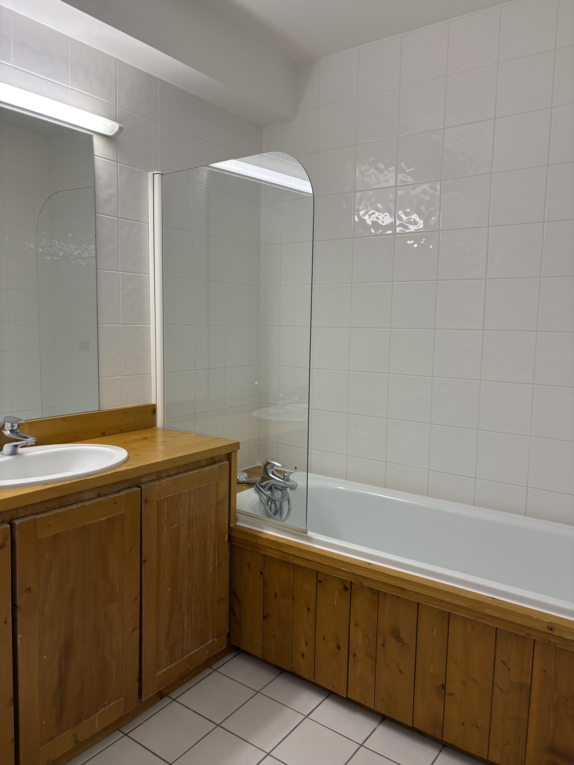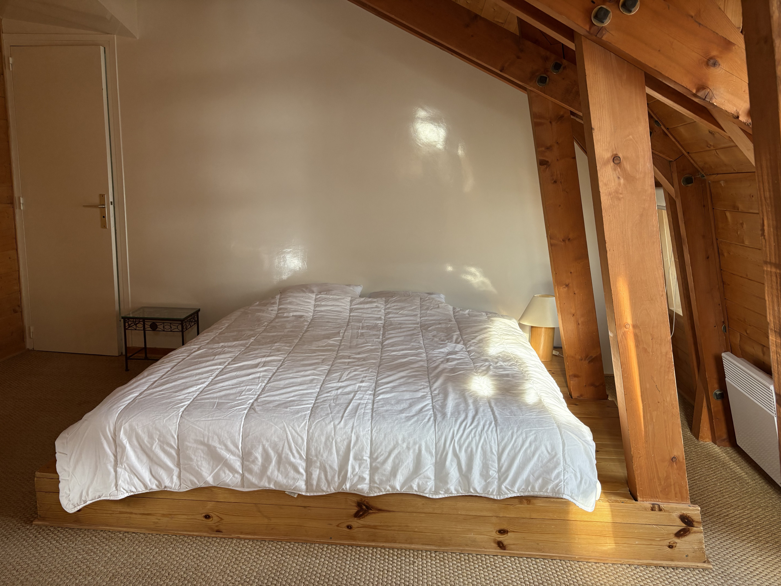 - A few steps to the right lead to a pleasant reading corner with a magnificent view of the slate valley and an open fireplace. On the left, you'll find the living room area with double height and a magnificent exposed timber frame typical of the Avoriaz architecture by Mr. Jacques Labro. An angled bench provides numerous seating options to enjoy the view of the high forts and the Arare sector. A balcony is accessible from the living room.